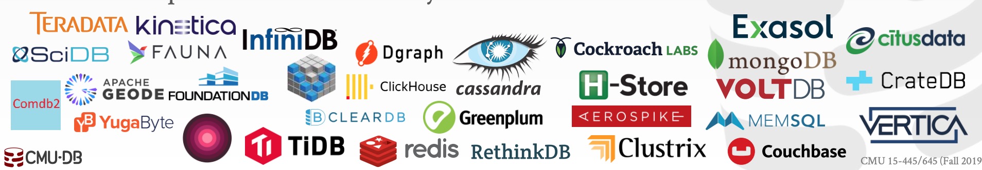 事实上,分布式数据库并不是新概念。早在 1979 年,Andy Pavlo 的导师 Michael Stonebraker 就开发了 Muffin 数据库,即 Ingress 的分布式版本;SDD-1 (1979) 是 Phil Bernstein 在分布式数据库上的原型系统,并没有真正在正式环境中使用,但许多关于分布式事务的观点和论文都是 Phil 基于 SDD-1 提出的;System R* (1984) 是 IBM Research 的内部项目,是 System R 的分布式版本,但并没有进入市场,然而后继者 DB2 实际上有相应的分布式版本;Gamma (1986) 是 Dewitt 实现的高性能分布式数据库;NonStop SQL 是 Jim Gray 基于高容错系统设计的一款分布式数据库系统,也是上述系统中唯一进入商用的系统,现在仍然运行在许多大型金融系统中。