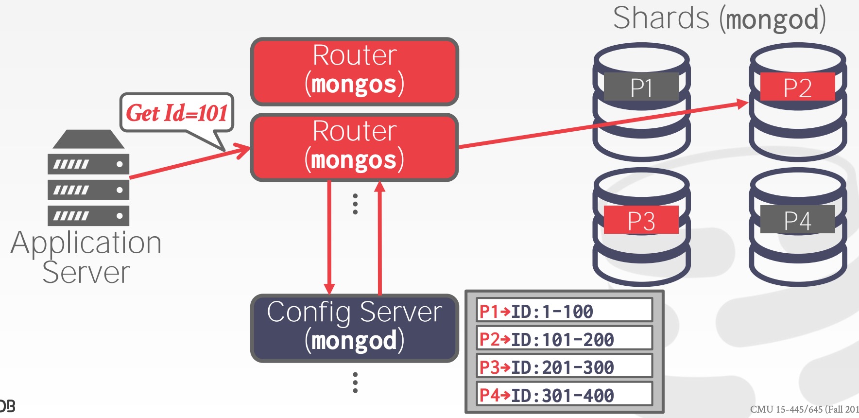 在 MongoDB 集群中有 3 种角色,Router、Config Server 以及 Shard。所有请求都打到 Router 上,Router 从 Config Server 中获取路由信息,即哪些数据存放在哪些分片上,然后根据这些路由信息将请求发送到对应的分片上执行。