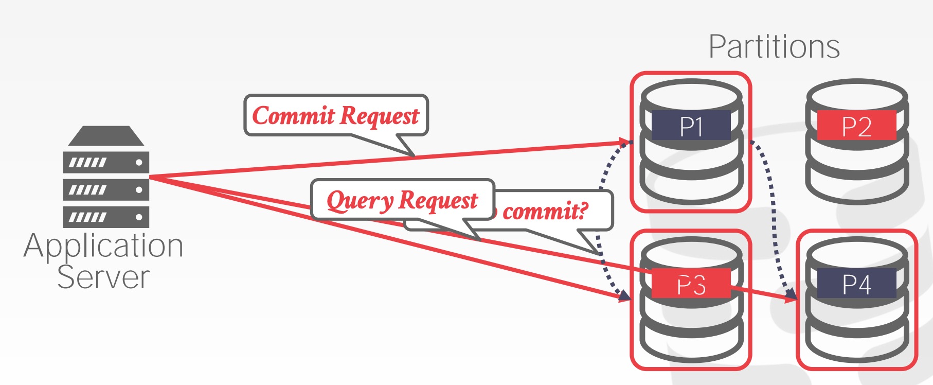 拿到锁后,应用就可以到 P1、P3、P4 上修改数据 (未提交),修改完毕后再向 Coordinator 发送 Commit 请求,Coordinator 询问各个分片刚才的修改是否可以安全地提交,可以就提交,然后 Coordinator 返回 Ack:
